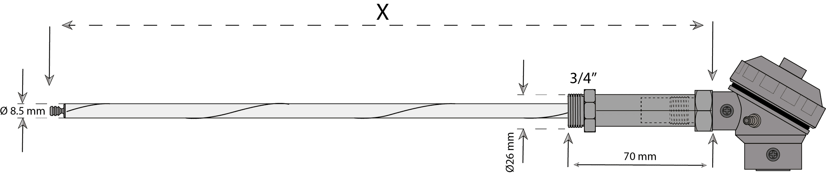 - Erhältlich mit Thermoelement Typ R für Temperaturen bis 1700°C (3100°F)